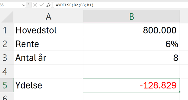 Brug af Excel til annuitetsregning