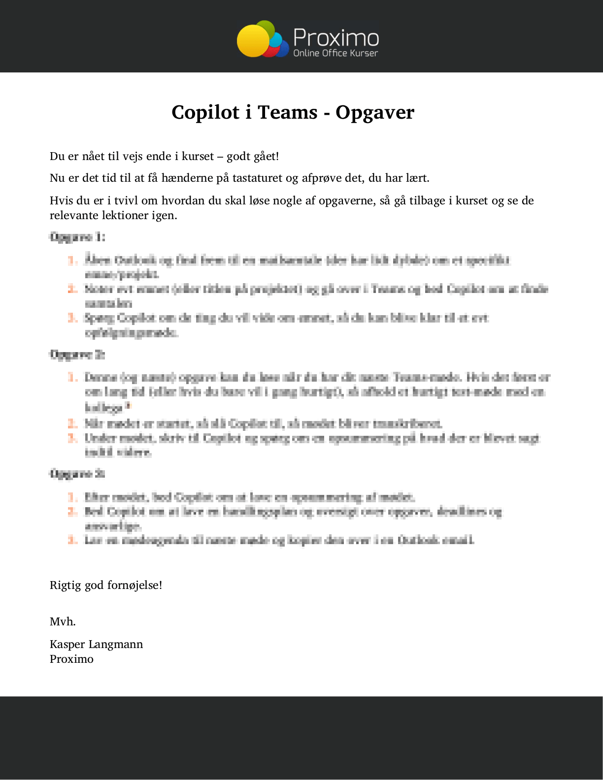 Så opret et Proximo-medlemskab og få adgang til kurset “Copilot i Teams” og alle vores andre kurser.