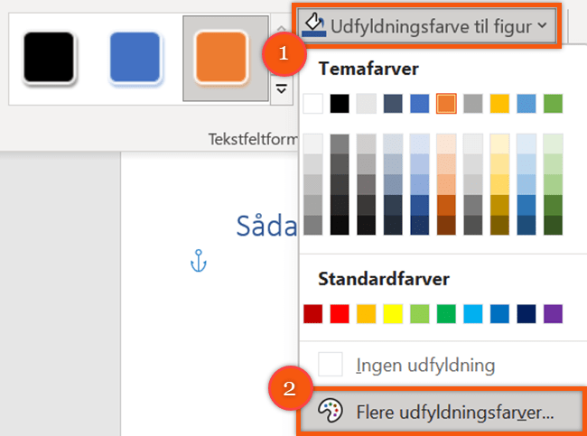 Hvis du vil ændre farven til en anden end dem, der dukker op, skal du klikke på “Udfyldningsfarve til figur”: