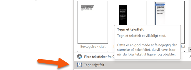 Du kan vælge at bruge en af Words skabeloner til tekstfelter, eller du kan tegne dit eget. Uanset hvad du vælger, kan du tilpasse den senere.