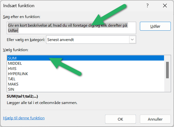 Der er flere metoder til at indsætte en funktion i Excel, men den nemmeste måde at komme i gang med er knappen “Indsæt funktion.
