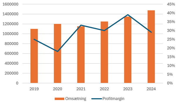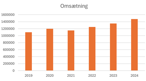 Her er et diagram, der viser udvikling i omsætning for en årrække (2019 – 2024).
