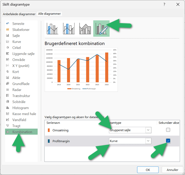 Trin 4: Vælg nu hvilket type diagram der skal bruges til at visualisere den ekstra data, her profitmargen.