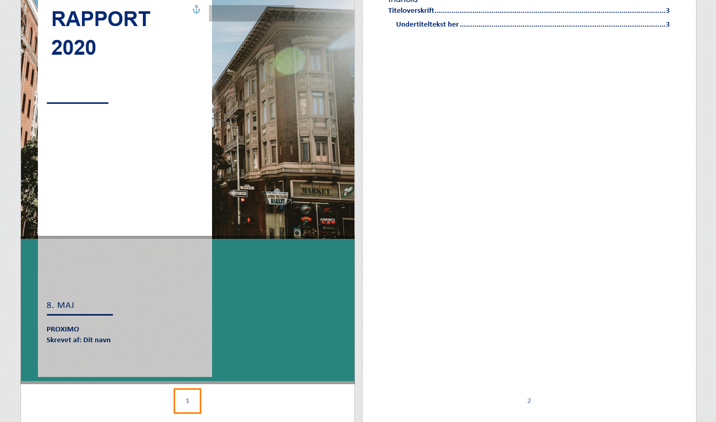 Herefter er vi tilbage i det normale indhold, hvor vores resultat nu er blevet til en forside uden sidetal .