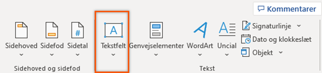 Klik herefter på “Tekstfelt” helt ude til højre i værktøjslinjen: