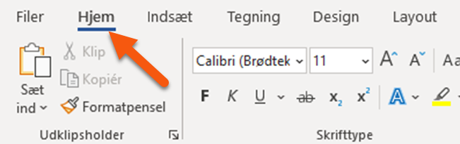 Tryk på fanen “Hjem” øverst i værktøjslinjen:
